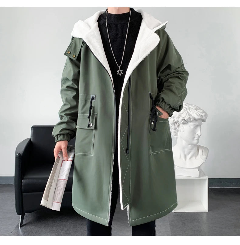 2025 Men’s Hooded Thick Trench Coat — High-Quality Windbreaker, Casual Streetwear (S–3XL).