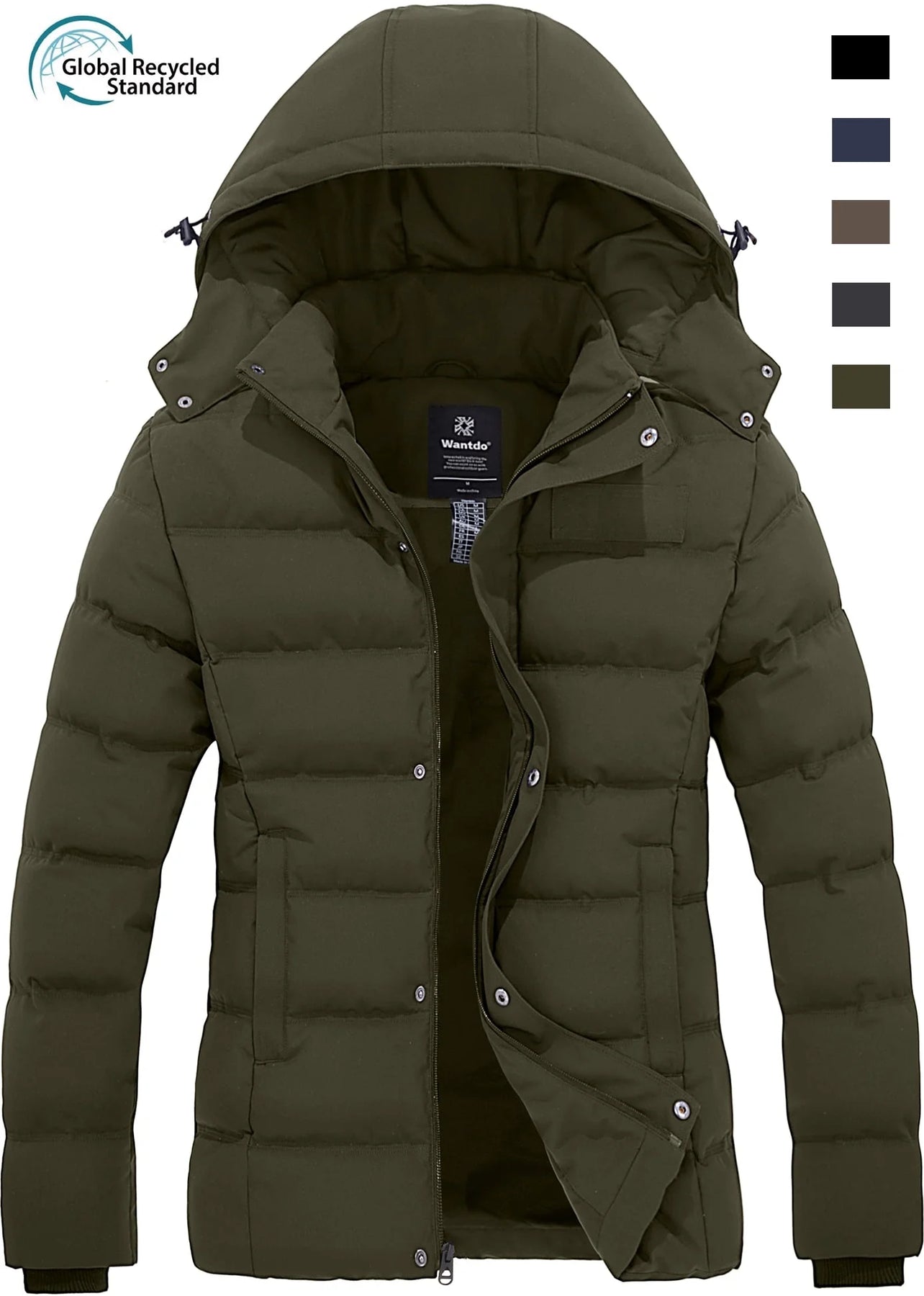 Windproof Hood: Our women's windproof puffer jacket features a detachable hood for versatile weather use, providing extra warmth and protection. This coat for women shields against cold winds and can be easily removed on milder days.